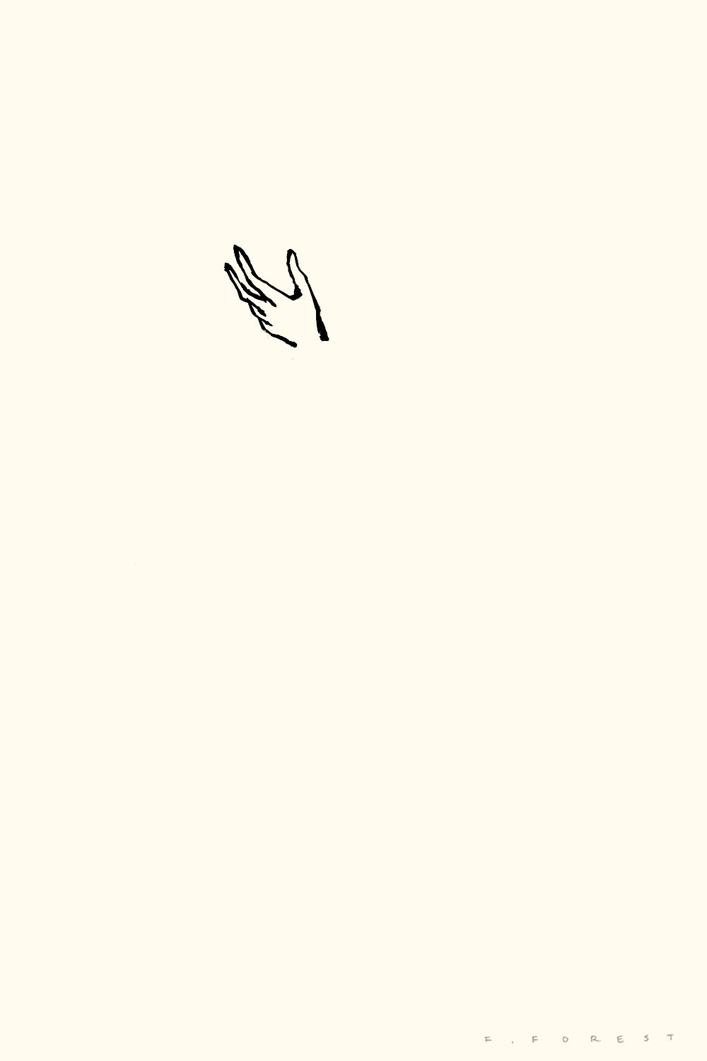 It’s important to visualize the size and placement of the rest of the figure on the page. I start from the top, beginning with the man’s hand. Here, the thumb was the first stroke.