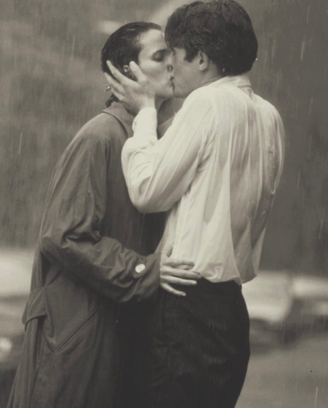 There have been thousands, even millions of interpretations of love. As many as there are people on Earth, as many as there have been women and men. The first image that often comes to mind is a couple embracing and kissing. At first, I thought of the famous Kiss by the Hôtel de Ville photo, but while searching for it, I came across this image taken from Four Weddings and a Funeral, the British film directed by Mike Newell, released in 1994. It struck me as bolder and just as rooted in our collective memory. And that kiss between Andie MacDowell and Hugh Grant is just as iconic.