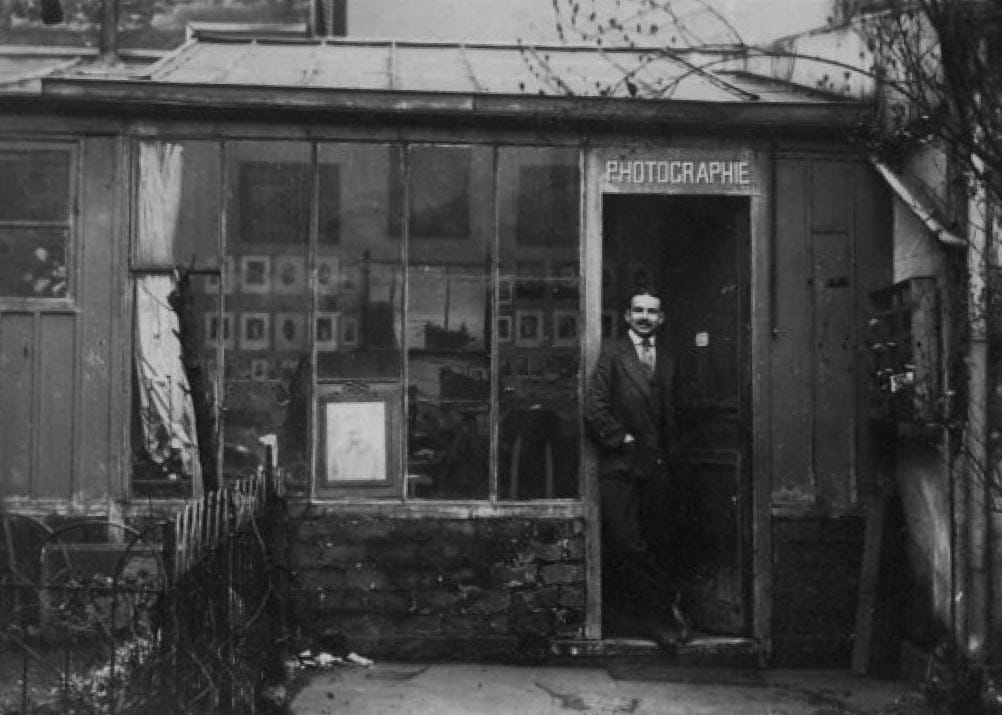 Marc Vaux at the door of his first studio, 23 Avenue du Maine, Paris, 1919, Anonymous, © Centre Pompidou – Mnam – Bibliothèque Kandinsky – Marc Vaux Collection.