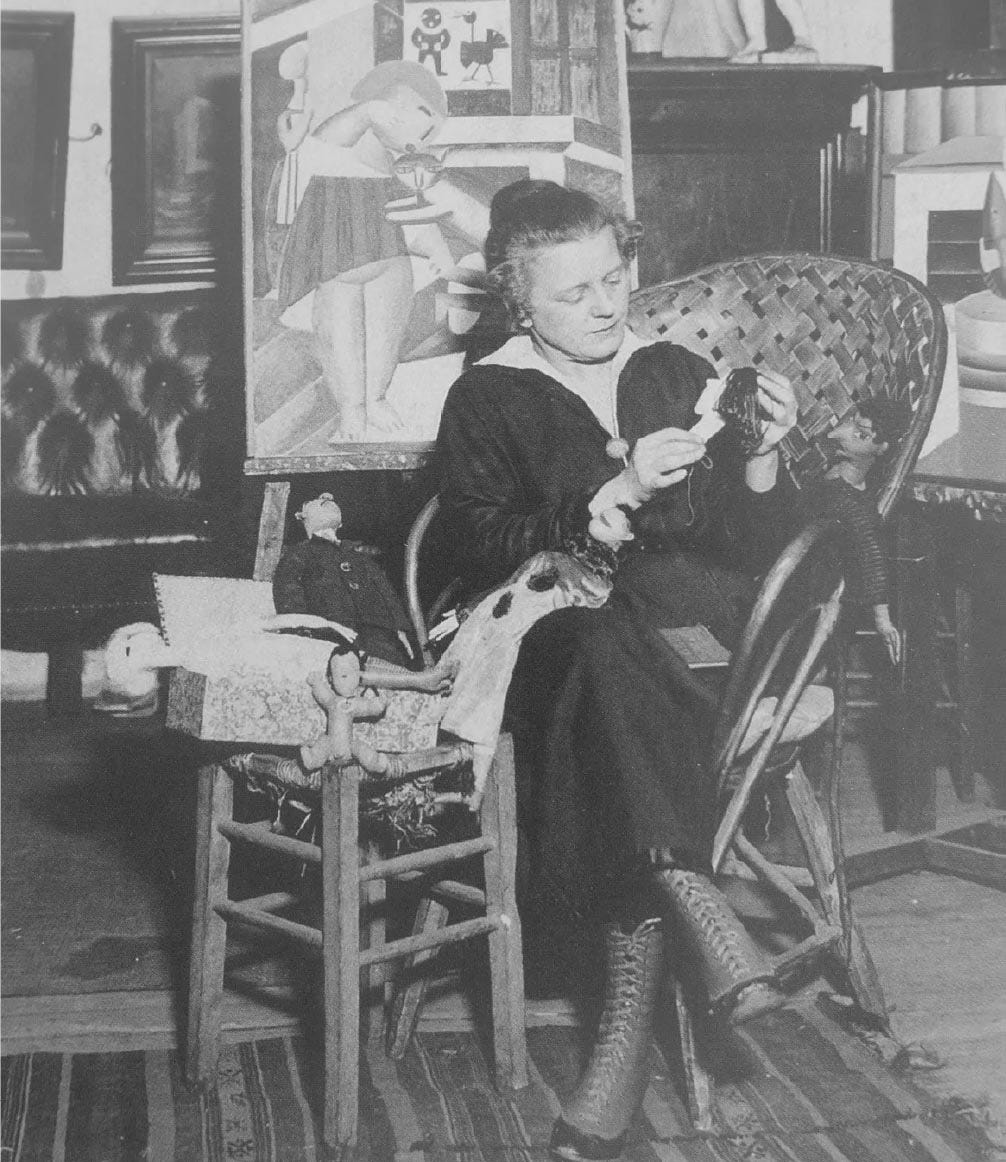 Marie Vassilieff in her studio at 21 Avenue du Maine, 1922. Photograph by Agence Trampus, all rights reserved, Claude Bernès collection.