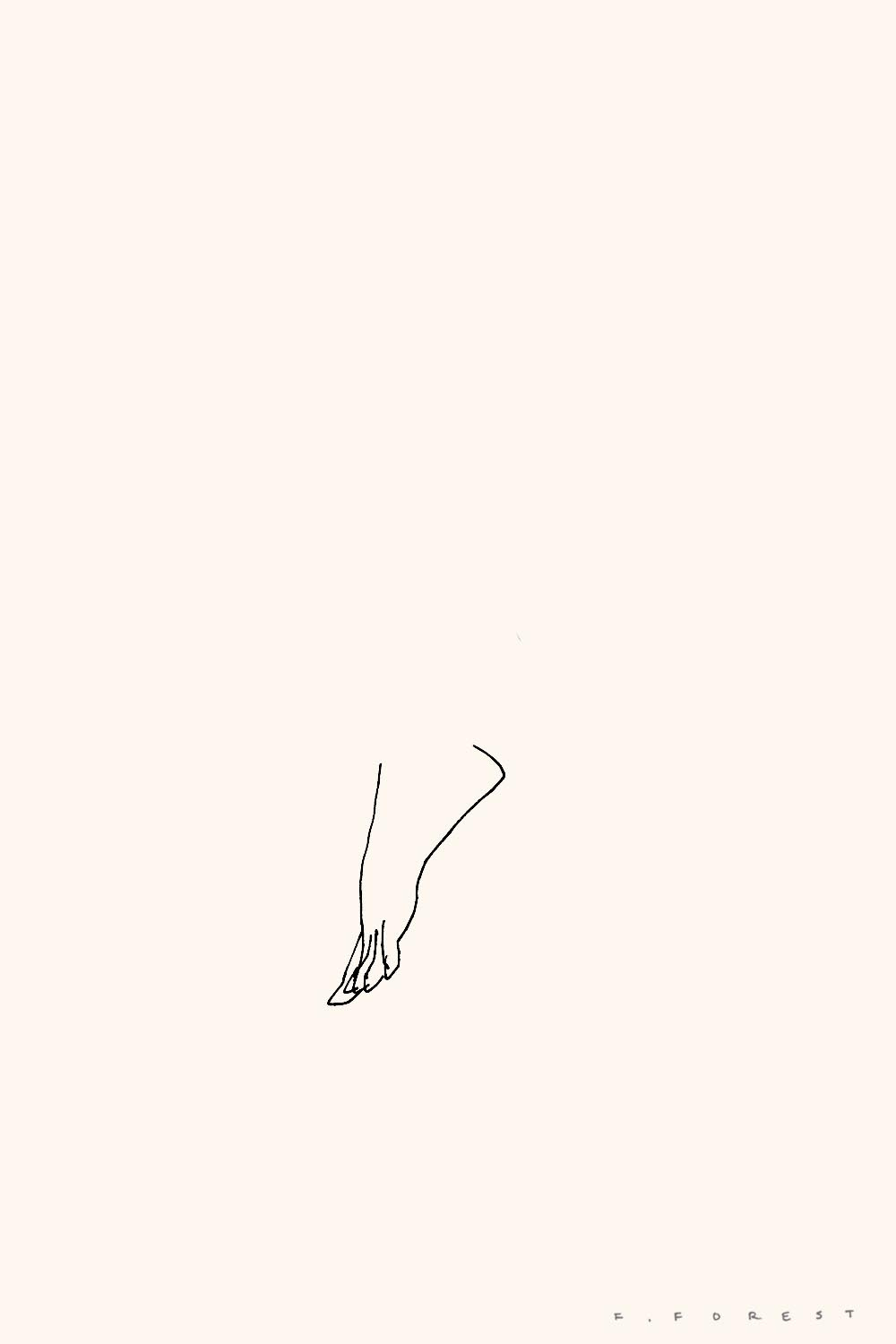 I start directly with the foot, as I’ve positioned it so that it’s at the center of what I’m going to draw. It’s important to keep in mind the size and placement of the rest of the silhouette on the page, but here, I’m really focused on quickly visualizing the drawing in my mind. I begin with the top part of the foot and move down to the big toe. Then, I mark each toe one by one. They are both tense and relaxed. You can either draw them in sequence, one after the other, or mark small lines to find the rhythm and the more or less regular spacing between each toe. It’s up to you.